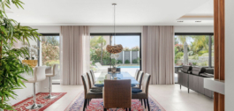 Bienvenido a esta casa moderna y muy bien construida en la zona baja de Nueva Andalucia. Al entrar se le da la bienvenida con una gran cocina abierta que conduce a la zona de comedor y sala de estar, desde aquí se puede acceder a la gran terraza cubierta y en la zona de la piscina con un amplio espacio para tomar el sol y con una ducha al aire libre. En la planta principal hay un dormitorio en suite que actualmente se utiliza como oficina. En la primera planta hay 3 dormitorios en suite, todos con acceso a una terraza cubierta. Desde aquí hay escaleras que conducen al solarium que ha sido equipado con paneles solares, dejando espacio para crear un espacio de entretenimiento. En la planta sótano tiene la zona de lavandería, un 2º aseo de invitados, un dormitorio en suite, una gran sala que podría ser utilizada como sala de cine, etc y por último un amplio garaje para hasta 4 coches. A todas las plantas se accede por escaleras o ascensor. La tecnología en la casa es moderna con calefacción por suelo radiante a base de agua alimentado por el sistema aerotérmico, el aire acondicionado es a través del sistema Airzone, filtros de agua y paneles solares hacen de esta casa muy eficiente para vivir. Una casa en una posición muy central hace de este un perfecto para vivir todo el año o una casa de vacaciones con la ventaja añadida de ser una propiedad de alquiler atractivo debido a su tamaño y ubicación.