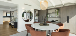 En el interior, el diseño refinado se une a la elegancia atemporal. Cada espacio está impecablemente decorado con muebles hechos a medida y acabados de primera calidad por el aclamado estudio de interiorismo La Albaida. Las zonas de estar y comedor de concepto abierto disfrutan de un flujo perfecto entre el interior y el exterior a través de grandes puertas de cristal, que inundan la casa de luz natural y conectan sin esfuerzo con las terrazas exteriores.