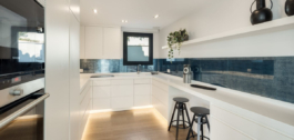 La moderna cocina es a la vez funcional y hermosa, equipada con electrodomésticos de alta gama, generoso almacenamiento y amplio espacio en el mostrador, ideal para la vida cotidiana o de acogida.