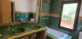 Desde el salón se accede a dos dormitorios de invitados con armarios empotrados y un baño compartido situado en el pasillo. El pasillo de entrada también conduce a una cocina independiente con una terraza cerrada/zona de lavandería y acceso directo al jardín que rodea la casa. Además, desde el pasillo se accede al espacioso dormitorio principal, que incluye un baño completo en suite y un vestidor. Este dormitorio también se abre a otra de las terrazas que envuelven la propiedad.