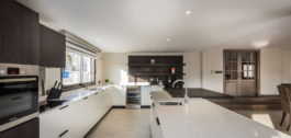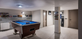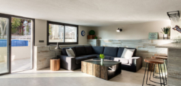 Desde el vestíbulo de entrada, la escalera que conduce a la planta baja le lleva a la sala de juegos y zona de bar, que conduce a la gran cocina moderna y comedor de planta abierta / sala de estar. Todas las áreas conducen a terrazas al aire libre o al jardín y la piscina, trayendo mucha luz natural. En esta planta, también hay un aseo de invitados, lavadero y 2 trasteros que conducen al garaje.