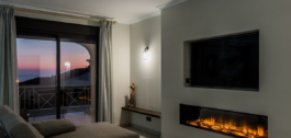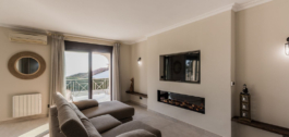 En el nivel de entrada, se encuentra un gran salón con chimenea eléctrica y pared de TV. Hay 5 dormitorios dobles de los cuales 2 son en-suite. 3 dormitorios tienen balcones y con vistas al mar o al jardín / piscina. Todos los dormitorios tienen armarios empotrados. Los otros 2 dormitorios comparten 1 cuarto de baño / aseo.