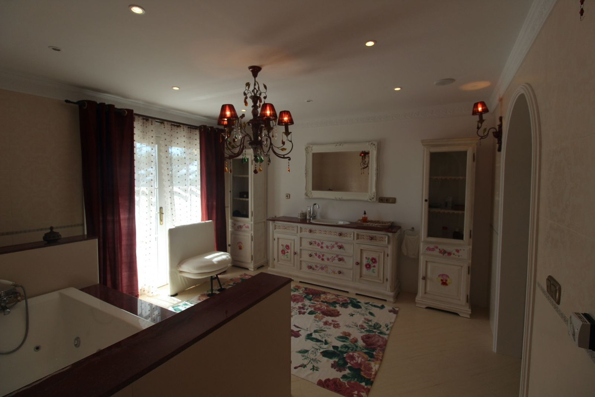 Estamos encantados de poder ofrecer a la venta esta encantadora villa en Fuente del Espanto situado en el lado este de Benahavis cerca de la zona de La Quinta y 5 minutos en coche del centro de San Pedro Alcantara. La propiedad principal cuenta con 4 dormitorios, 4 baños en suite, amplio salón con chimenea y comedor, cocina nueva totalmente equipada con comedor independiente, primera planta ofrece cocina totalmente equipada con comedor, sala de estar con chimenea, tres dormitorios con baños en suite, segundo piso ofrece dormitorio principal con 2 baños y 2 vestidores. La propiedad también cuenta con instalaciones de spa Indore, jacuzzi, sauna, baño de vapor, bodega con temperatura controlada, casa de huéspedes de 1 dormitorio, y un gran hall de entrada, el segundo piso ofrece dormitorio principal con 2 baños y 2 vestidores, Fuera de la propiedad cuenta con un gran patio de estilo integral, garaje para 2 coches, y hermosos jardines con piscina. Tenga en cuenta esta impresionante casa ha sido construida al más alto nivel utilizando sólo los mejores materiales. Visitas muy recomendable.
