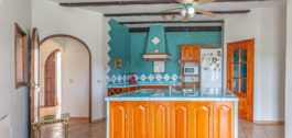 En la planta baja, la villa ofrece una casa de invitados independiente con su propia cocina, baño, dos dormitorios y amplio espacio de almacenamiento. Esta zona, llena de luz natural, conecta directamente con el jardín y la piscina, garantizando la privacidad y comodidad de sus invitados o familiares. Además, la villa cuenta con una cochera en la entrada y un amplio garaje privado, ofreciéndole la comodidad y seguridad que se merece.