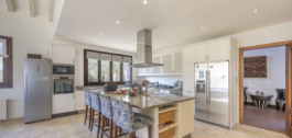 La villa está construida principalmente en una sola planta, con un anexo adicional para invitados encima del garaje, que ofrece privacidad y comodidad para los visitantes o el personal.