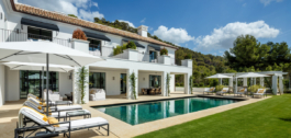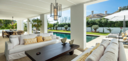 Creada por el aclamado arquitecto de Finca Cortesín, la villa irradia serenidad y paz en su exterior de tonos desnudos, ofreciendo un ambiente tranquilo a sus residentes. Los jardines son un verdadero oasis, perfectos para celebrar reuniones y aprovechar al máximo los 320 días de sol de Marbella. Coloridas paredes florales enmarcan la propiedad, añadiendo vitalidad y combinando a la perfección el entorno natural con la finca.