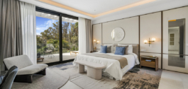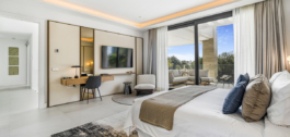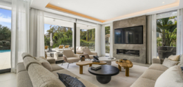 Descubra esta nueva villa de seis dormitorios con orientación sur, situada en la prestigiosa urbanización cerrada de Lomas del Marqués, justo encima del famoso Puente Romano Resort, en la Milla de Oro de Marbella. Idealmente situado a poca distancia de la playa y a pocos minutos de Puerto Banús y Marbella, esta exquisita propiedad combina el lujo moderno con una comodidad sin igual.