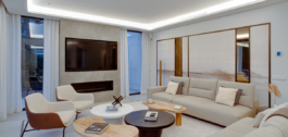 El nivel inferior de la villa está diseñado para la relajación y el entretenimiento, con una zona de estar, bar, mesa de billar y dos suites adicionales para invitados. Esta planta también da acceso a un garaje privado con espacio para tres coches, incluidos cargadores eléctricos.