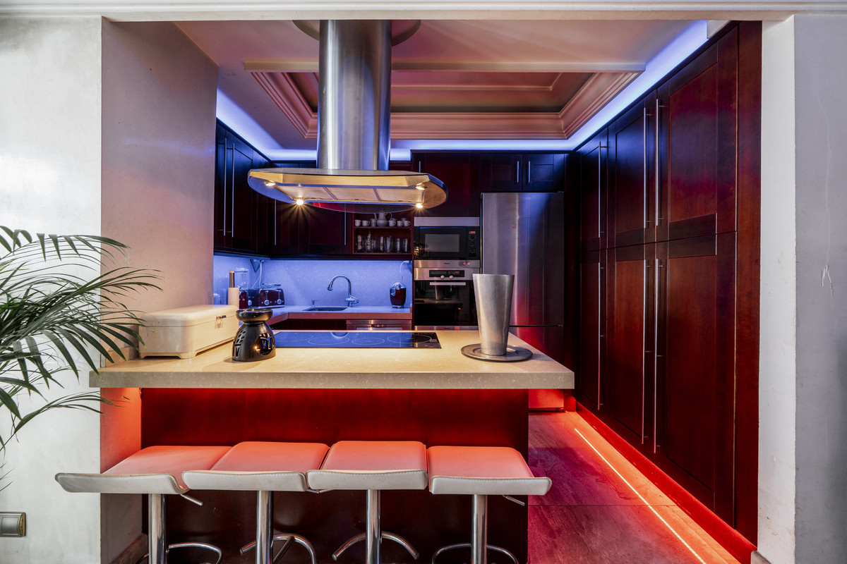 A nivel de entrada se encuentra una amplia zona de estar con chimenea y techo alto que hoy alberga una peluquería. La escalera que conduce al segundo piso fue hecha a mano para elevar la arquitectura de este hermoso apartamento. Arriba encontrará 2 dormitorios y una sala de estar que hoy se convierte en dormitorio, en esta planta también se encuentra la cocina. Desde el salón se puede disfrutar de algunas de las vistas más espectaculares de Puerto Banús y la concha. Esto realmente una propiedad impresionante que debe ser visto.