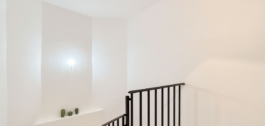 La planta superior incluye un dormitorio principal con balcón Julieta y vistas al mar, un segundo dormitorio amplio y luminoso, y un moderno cuarto de baño con cabina de ducha.