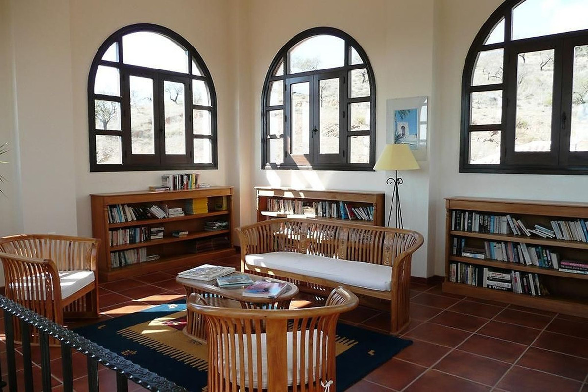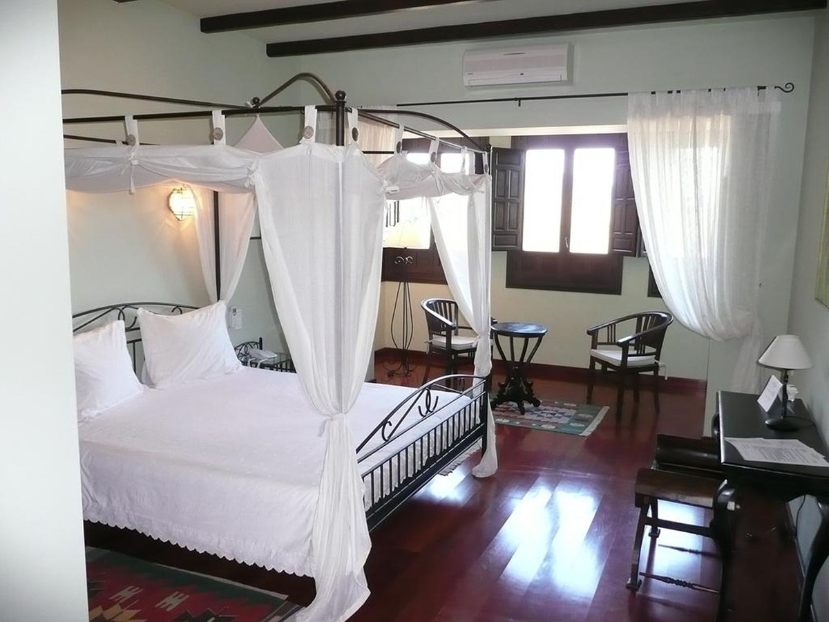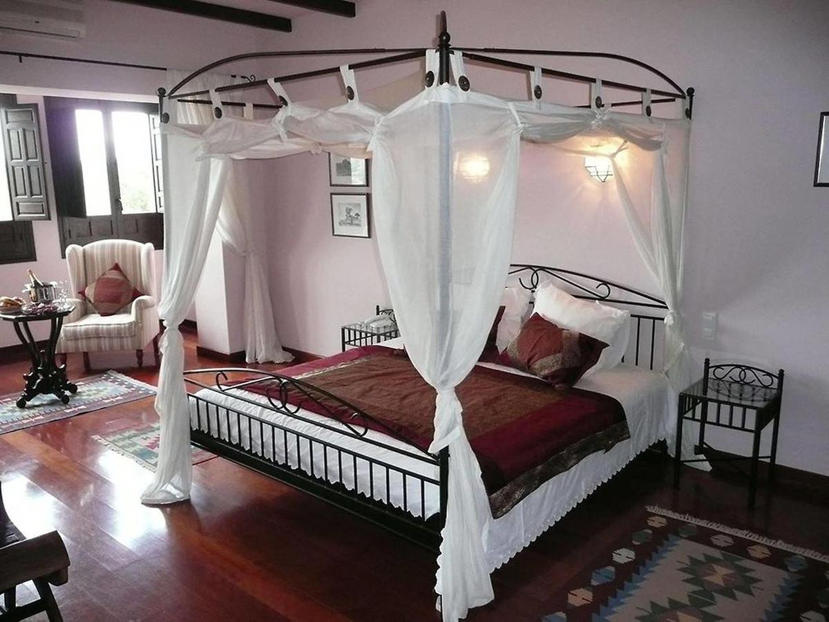 Primera planta: Ocho espaciosas habitaciones dobles, cuatro de ellas con balcones con vistas al patio o al paisaje. Los cuartos de baño presentan elementos de diseño homogéneos, mientras que las habitaciones se distinguen por su combinación de colores. Todas las habitaciones están amuebladas con modernas camas con dosel, dobles o individuales. Cada habitación ofrece abundante espacio y lujo, y es lo suficientemente grande como para incorporar una zona de estar y un escritorio. En esta planta también hay un espacio para guardar la ropa de cama. Un nivel más arriba se encuentra el "Mirador" actualmente utilizado como atelier.
