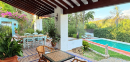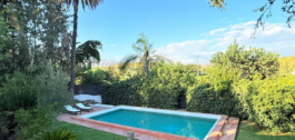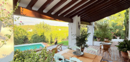 Desde el amplio porche se accede a una terraza de 159 m² con vistas al jardín maduro y a una piscina de 50 m², rodeada de árboles de más de 30 años que proporcionan sombra natural, serenidad y un romántico ambiente mediterráneo. La parcela, de algo más de 4.000 m², también incluye una zona de barbacoa con horno de leña, ideal para reunirse con la familia y los amigos.