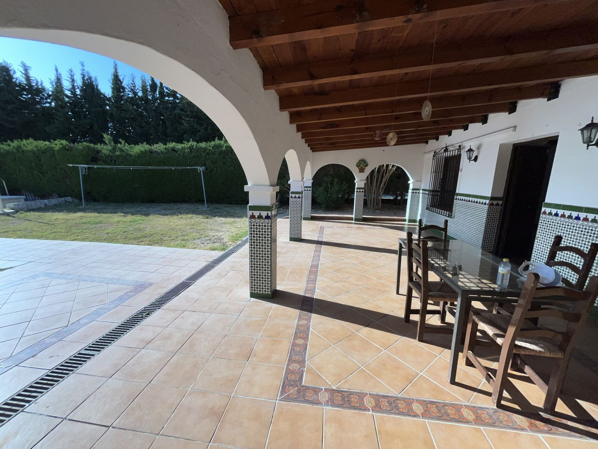 Encantadora finca-cortijo en venta en Estepona, ofrecida a un precio exclusivo, que cuenta con 5 dormitorios, 2 baños, 250 m² construidos, 50 m² de terraza y una gran parcela vallada de 4.000 m² con huerto y árboles frutales. Orientada al sur y rodeada de naturaleza, disfruta de impresionantes vistas al campo, montaña, costa y campos de naranjos. La propiedad incluye una piscina privada, dos piscinas comunitarias, un apartamento independiente para invitados, amplio garaje, salón-comedor con chimenea, estudio, cocina totalmente equipada, armarios empotrados, zona de barbacoa, agua de pozo, depósito de agua adicional y se entrega completamente amueblada. Situada en una zona tranquila con excelentes accesos por carretera y cerca del mar, esta finca es ideal para aquellos que buscan comodidad, privacidad y carácter en una de las zonas más prestigiosas y cotizadas de la Costa del Sol.