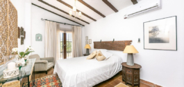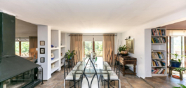 La propiedad consta de una espaciosa casa principal construida en una sola planta, que ofrece 460 m² distribuidos en 4 amplios dormitorios con baños en-suite, un luminoso salón con techos altos y chimenea, y una generosa cocina también con chimenea.