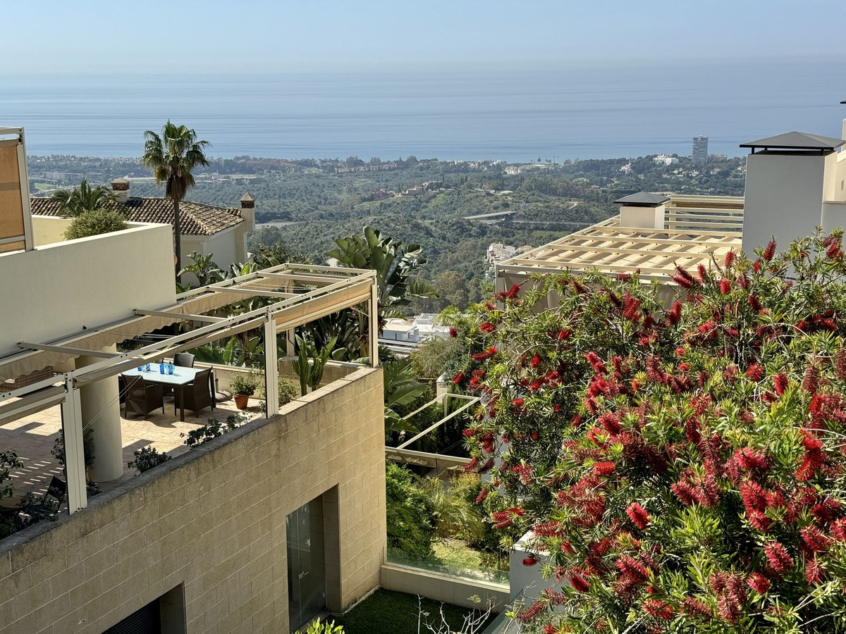 Enclavado en un entorno natural y tranquilo, rodeado de robles y pinos, en un prestigioso complejo contemporáneo con servicio de conserjería y seguridad 24 horas, este amplio apartamento de 2 dormitorios en esquina ofrece algunas de las mejores vistas del Mediterráneo en Marbella.