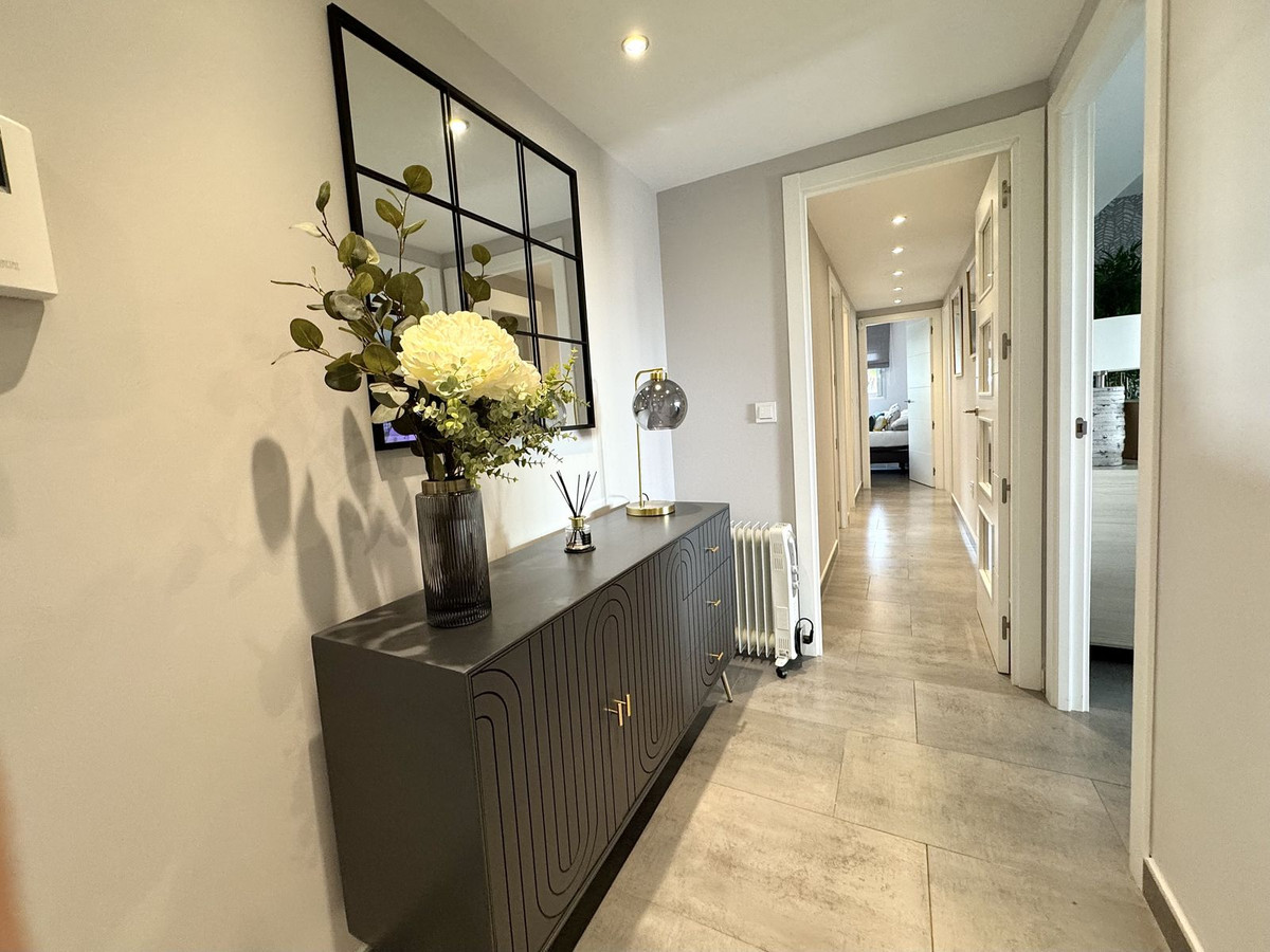 Este magnífico y moderno apartamento en planta baja está situado en Marques de Guadalmina, una prestigiosa urbanización cerrada a sólo 7 minutos de Puerto Banús. El apartamento cuenta con una enorme terraza exterior y un gran jardín privado en forma de U que rodea la propiedad, ofreciendo un estilo de vida familiar ideal.