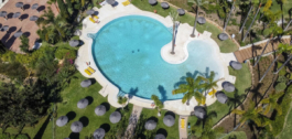 Situado en 2ª línea de playa, tendrá la comodidad de poder ir andando a la playa, así como a supermercados y restaurantes. La urbanización destaca por su seguridad 24 horas y sus fantásticas instalaciones, que incluyen su propio restaurante, dos piscinas y exuberantes jardines tropicales de aproximadamente 20.000 m², que ofrecen un verdadero oasis de paz.