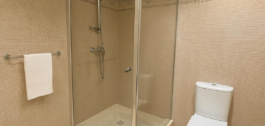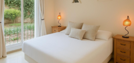 El dormitorio principal es espacioso e incluye armarios empotrados, una persiana enrollable para mayor privacidad y comodidad, y un baño en-suite en buen estado. El segundo dormitorio también es de generosas dimensiones, con armarios empotrados y una persiana enrollable. Un segundo cuarto de baño con ducha, inodoro y lavabo sirve a los huéspedes y al segundo dormitorio.