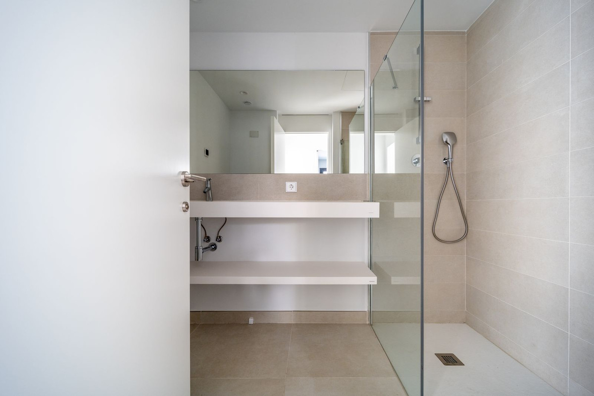 El salón cuenta con puertas correderas de suelo a techo que se abren a una amplia terraza envolvente de 35m2 con vistas urbanas, a la piscina y parciales al mar. Además, hay 68m2 de jardín privado y una ducha exterior. Amplio dormitorio principal con baño en-suite y terraza de 18m2, perfecta para disfrutar del sol de la mañana.