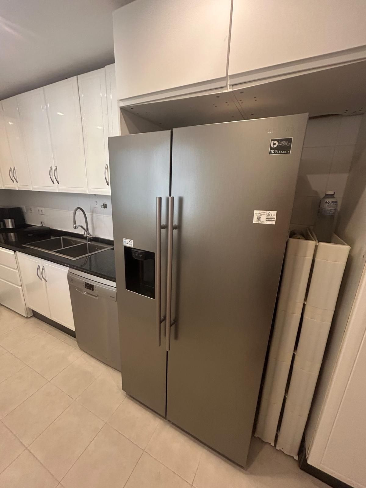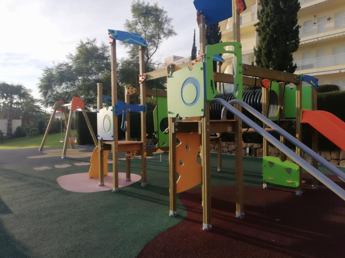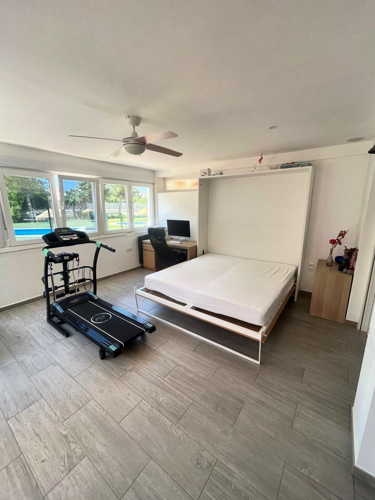 El amplio salón-comedor (40 m²) desemboca en la cocina independiente totalmente equipada. Desde el salón se ha creado una extensión inteligentemente diseñada, que puede utilizarse como tercer dormitorio adicional, gimnasio u oficina, con acceso directo a la generosa terraza de 46 m², que da a la primera de las cuatro piscinas comunitarias de la urbanización y a los jardines comunitarios, sin estar tan cerca como para que la piscina cause molestias.