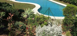 – Césped para tomar el sol rodeado de plantas mediterráneas
