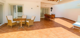El generoso tamaño de la terraza proporciona un amplio espacio para diversos fines, como una zona de tumbonas, una zona de comedor y una zona de barbacoa para deliciosas comidas al aire libre en las cálidas noches de verano.