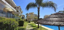 de estar, con amplias vistas a la gran piscina comunitaria, bien cuidada y
