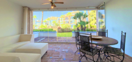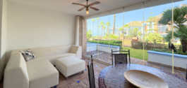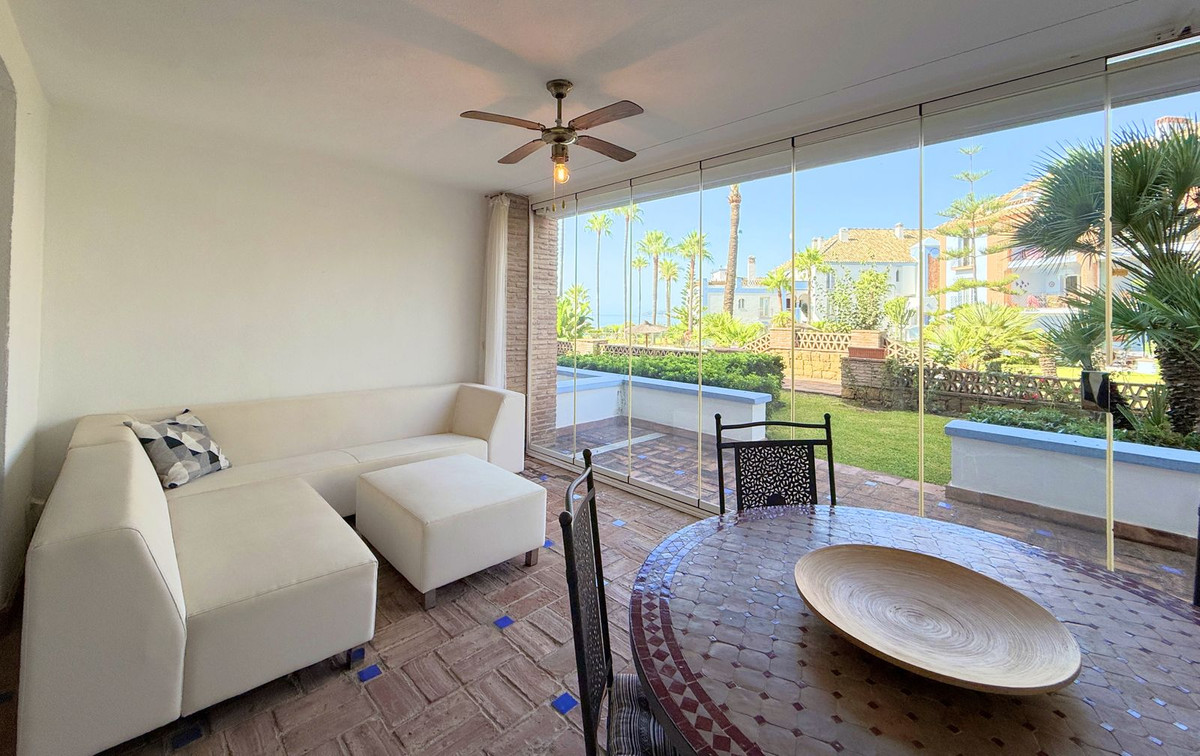 NUEVO EN EL MERCADO: IMPRESIONANTE APARTAMENTO DE PRIMERA LINEA DE PLAYA, PLANTA BAJA, ESQUINERA, con JARDÍN PRIVADO perfectamente cuidado por la comunidad, que ofrece ESPECTACULARES VISTAS AL MAR, A LA PLAYA, AL GIBRALTAR Y A ÁFRICA. Situado en la hermosa Bahía de Casares, junto a una zona histórica protegida con una antigua torre árabe, dentro del impresionante complejo La Perla de la Bahía, bellamente diseñado fusionando los estilos andaluz y árabe. Rodeado de exuberantes jardines, magníficas piscinas (2 climatizadas), gran variedad de fuentes decorativas y zonas de relax diseñadas para el máximo disfrute. A tan sólo 2 minutos a pie de 3 playas diferentes, 2 restaurantes de renombre, y el prestigioso resort de golf Finca Cortesín, premiado cada año como el Mejor Resort de Golf de España, clasificado entre los 50 mejores campos de golf del mundo, y sede de la prestigiosa competición Solheim Cup en 2023, entre otros. Estratégicamente situado entre Estepona y el encantador Puerto de la Duquesa y el pueblo de Sabinillas, todos a solo 5 minutos en coche, ofrece acceso a una amplia gama de tiendas, restaurantes, actividades de ocio y diferentes campos de golf. La comunidad cerrada ofrece seguridad las 24 horas y videovigilancia, garantizando tranquilidad y seguridad. Esta propiedad incluye 2 plazas de aparcamiento en garaje y 1 amplio trastero. Todo esto hace que no sólo sea una residencia de ensueño, sino también una excelente oportunidad de inversión con un alto potencial de alquiler. ¡Una propiedad única que hay que ver!