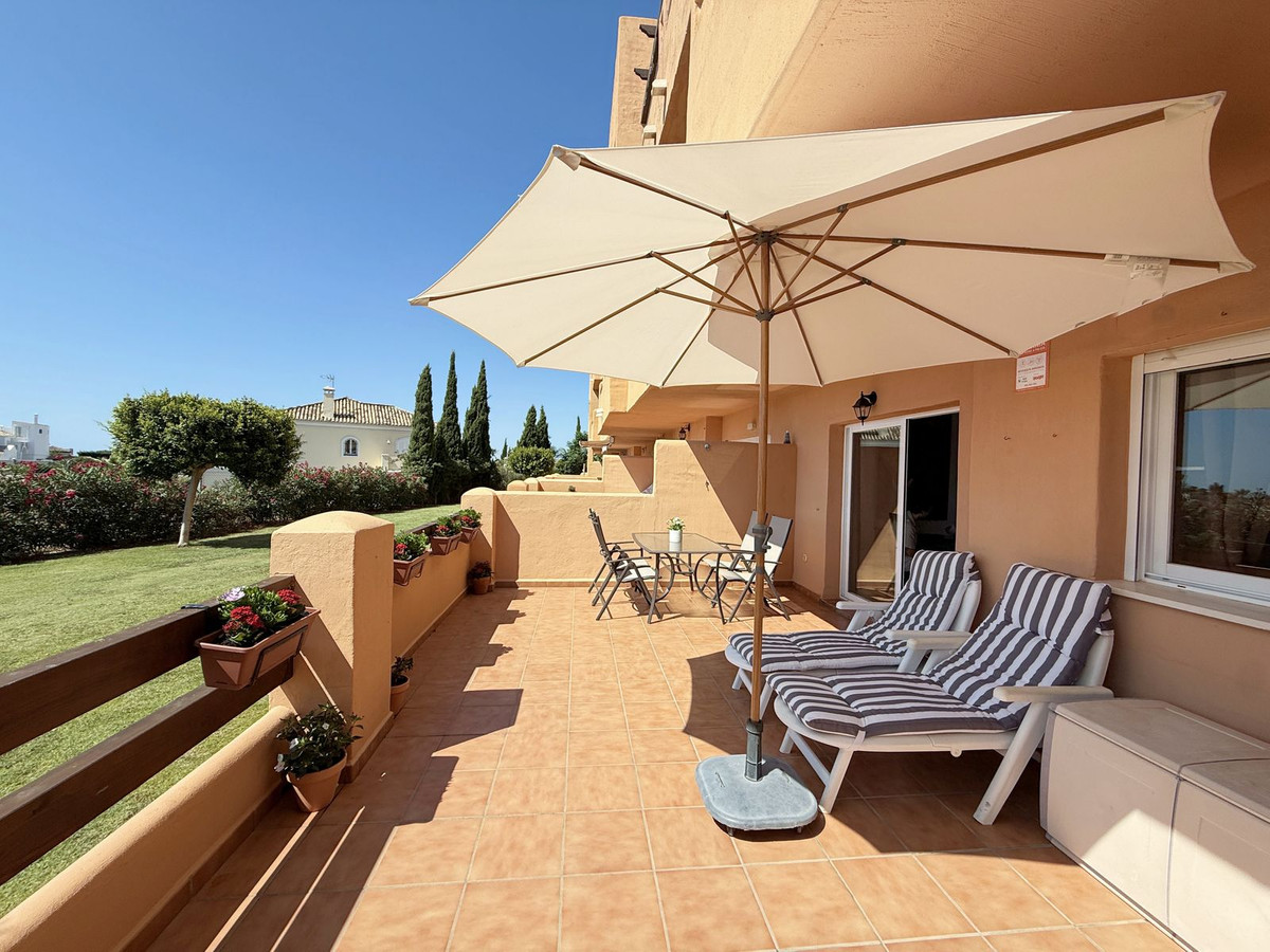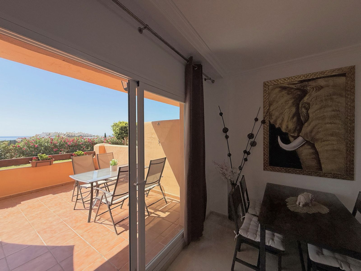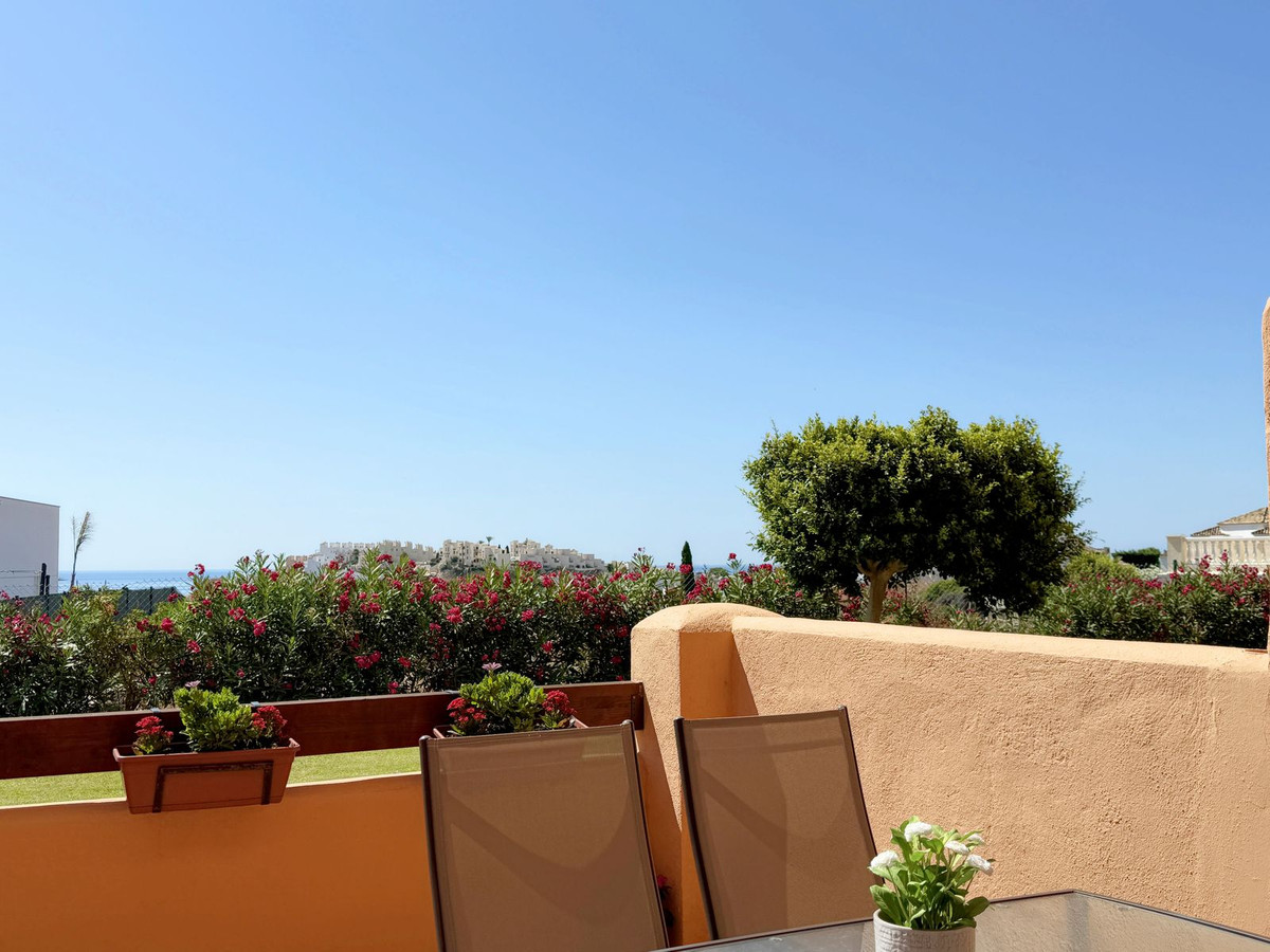 Situado en Casares Costa, una zona en expansión rodeada de naturaleza, prestigiosos campos de golf como Finca Cortesín y Doña Julia, y exclusivas urbanizaciones, este acogedor apartamento en planta baja destaca por su amplia terraza con vistas parciales al mar y un entorno tranquilo y privado, ideal para disfrutar del clima mediterráneo durante todo el año. A tan sólo 4 minutos en coche de los puertos deportivos de La Duquesa y Estepona, y cerca del próximo hotel Hilton, su ubicación ofrece un excelente acceso a playas de arena, un encantador paseo marítimo, restaurantes, chiringuitos y zonas de ocio. La propiedad está en perfectas condiciones y lista para entrar a vivir, con una distribución funcional de un solo nivel que incluye 2 amplios dormitorios, 2 baños, un luminoso salón con acceso directo a la gran terraza privada, y una cocina mejorada con un lavadero de nueva construcción que proporciona espacio y comodidad adicionales. Con orientación suroeste, el apartamento disfruta de luz natural durante todo el día y de un ambiente cálido y relajante. Situado dentro de una comunidad cerrada con acceso peatonal a la playa en aproximadamente 12 minutos, exuberantes jardines tropicales, 6 piscinas (una abierta todo el año), servicio de conserjería 12 horas al día, aire acondicionado frío y caliente, plaza de aparcamiento subterráneo, y un trastero. Además, cuenta con licencia turística en vigor, lo que la convierte en una inversión perfecta para uso personal o para alquileres vacacionales y de larga temporada. ¡Una oportunidad única que realmente merece una visita!