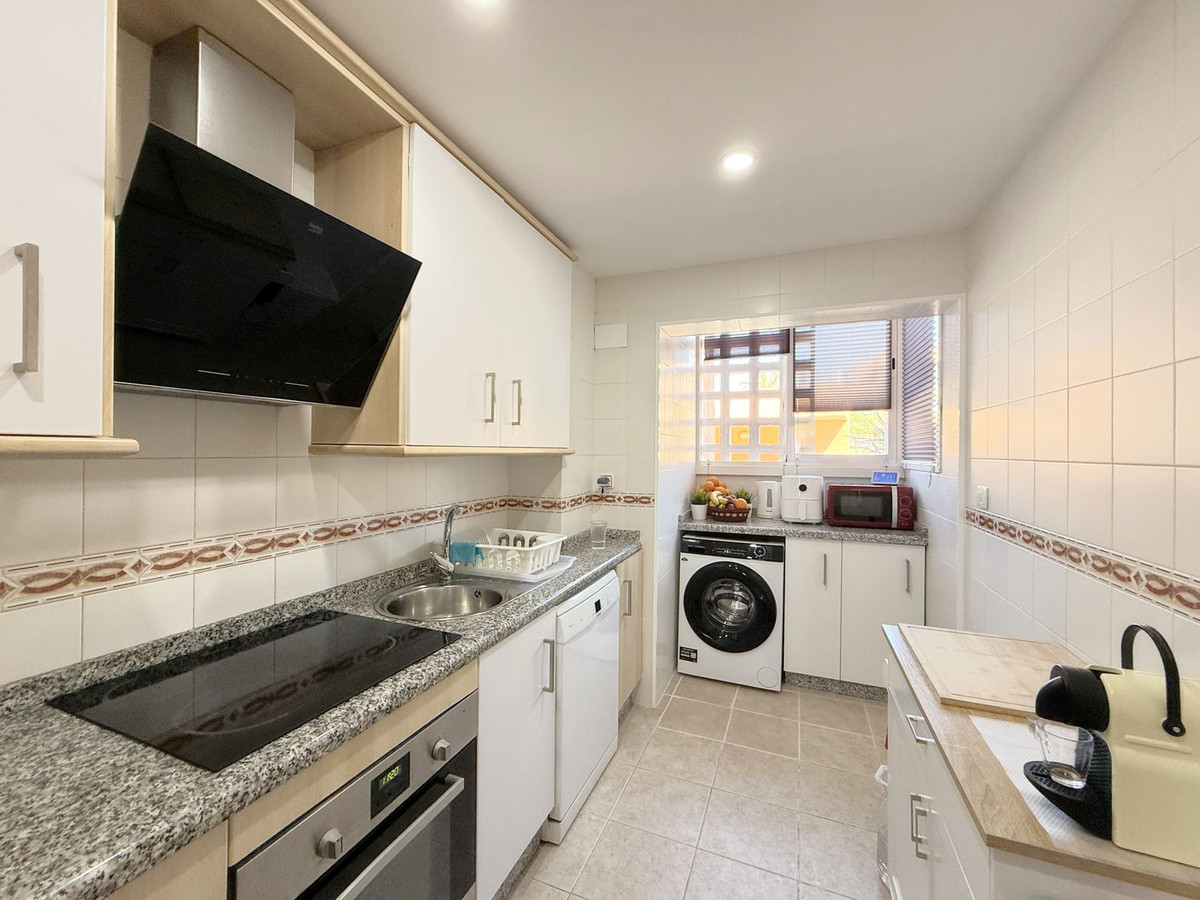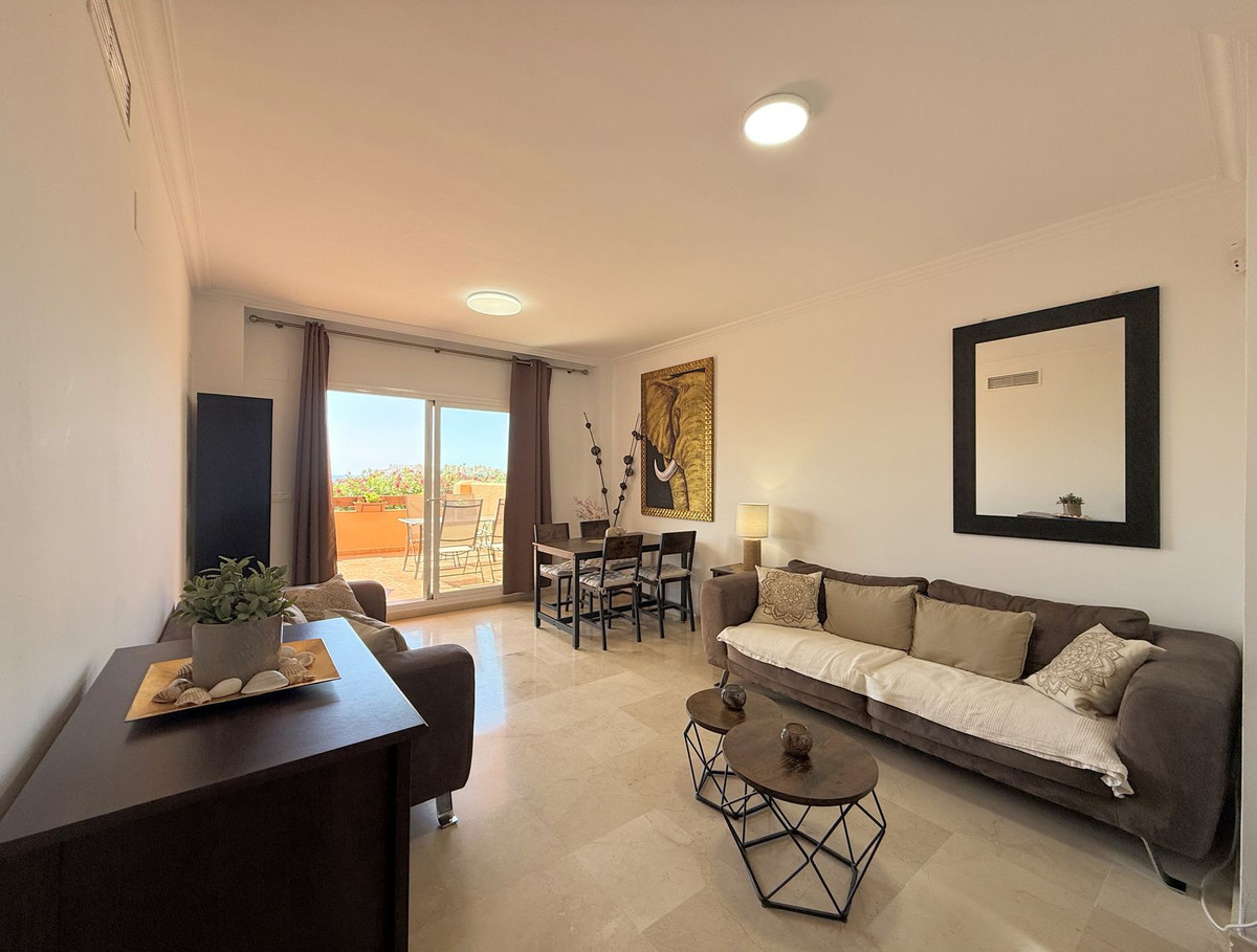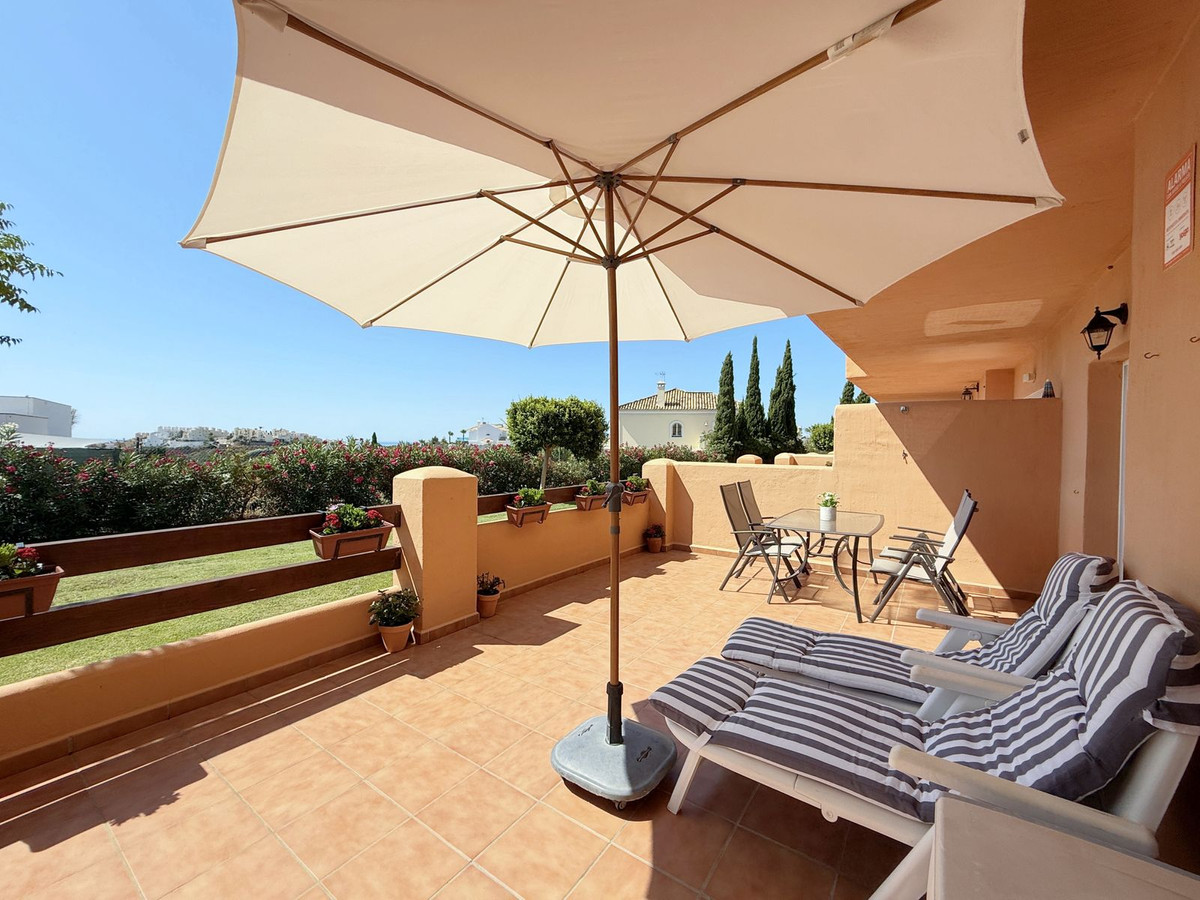 Situado en Casares Costa, una zona en expansión rodeada de naturaleza, prestigiosos campos de golf como Finca Cortesín y Doña Julia, y exclusivas urbanizaciones, este acogedor apartamento en planta baja destaca por su amplia terraza con vistas parciales al mar y un entorno tranquilo y privado, ideal para disfrutar del clima mediterráneo durante todo el año. A tan sólo 4 minutos en coche de los puertos deportivos de La Duquesa y Estepona, y cerca del próximo hotel Hilton, su ubicación ofrece un excelente acceso a playas de arena, un encantador paseo marítimo, restaurantes, chiringuitos y zonas de ocio. La propiedad está en perfectas condiciones y lista para entrar a vivir, con una distribución funcional de un solo nivel que incluye 2 amplios dormitorios, 2 baños, un luminoso salón con acceso directo a la gran terraza privada, y una cocina mejorada con un lavadero de nueva construcción que proporciona espacio y comodidad adicionales. Con orientación suroeste, el apartamento disfruta de luz natural durante todo el día y de un ambiente cálido y relajante. Situado dentro de una comunidad cerrada con acceso peatonal a la playa en aproximadamente 12 minutos, exuberantes jardines tropicales, 6 piscinas (una abierta todo el año), servicio de conserjería 12 horas al día, aire acondicionado frío y caliente, plaza de aparcamiento subterráneo, y un trastero. Además, cuenta con licencia turística en vigor, lo que la convierte en una inversión perfecta para uso personal o para alquileres vacacionales y de larga temporada. ¡Una oportunidad única que realmente merece una visita!