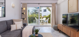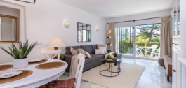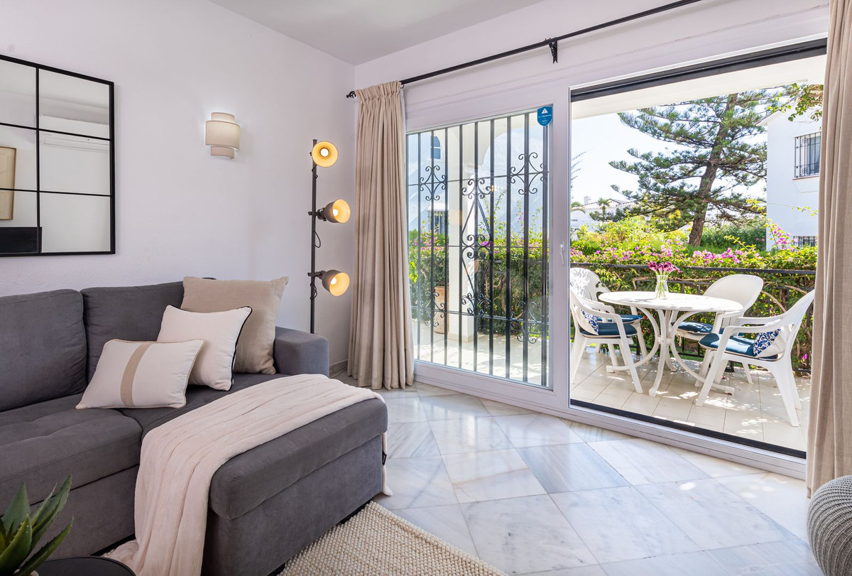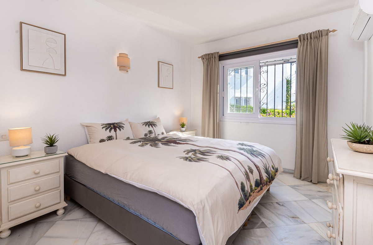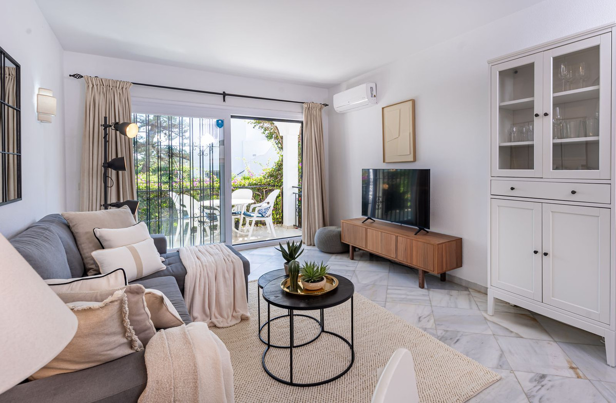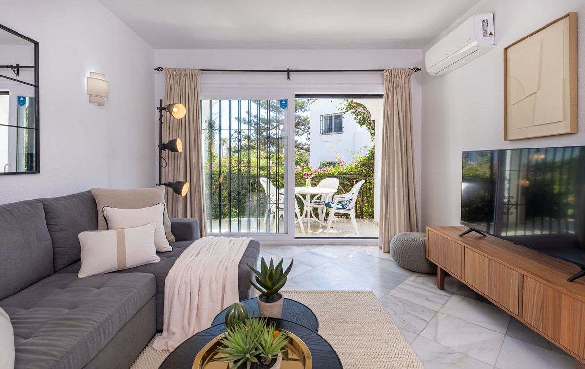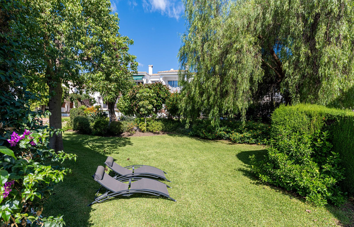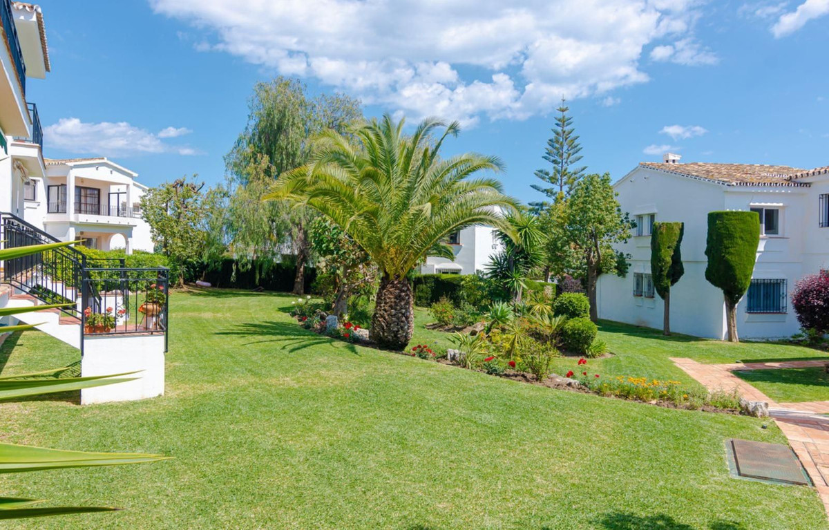 Excelente oportunidad para adquirir un apartamento de un nivel con jardín y un amplio trastero/patio andaluz en El Paraiso Cortes Del Golf, Benahavis.