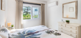 El dormitorio principal con una cama super king equipada con armarios de doble panel y ofrece vistas a los jardines tropicales – Adyacente lujoso baño principal andaluz diseñado con una inmaculada unidad de mármol blanco integrado tocador con carpintería blanca propósito construido, una bañera de porcelana con ducha, ventanas dobles y manchas integradas en el techo. Otro dormitorio de invitados con baño ensuite ofrece 2 camas con preciosas vistas al jardín.