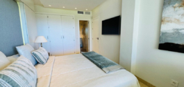Rara oportunidad de adquirir una propiedad en primera línea de playa en la zona muy exclusiva de Elviria situado a 15 metros en coche de Marbella. Este apartamento de 2 dormitorios y 2 baños en planta baja está totalmente renovado en estilo moderno y se vende completamente amueblado. La cocina abierta contemporánea se abre a la sala de estar que conduce a una terraza cubierta, equipada con cortinas de cristal que se pueden abrir cuando sea necesario. La propiedad es muy luminosa y forma parte de un pequeño complejo muy exclusivo de sólo 14 apartamentos, donde todos tienen impresionantes vistas al mar. Está equipado con ventanas de doble acristalamiento y persianas eléctricas, aire acondicionado frío y calor. El apartamento tiene un jardín privado incluido en el título de propiedad y una plaza de aparcamiento cubierto privado. El jardín comunitario de 2400m tiene acceso directo a la playa. El tamaño de la parcela es excepcional para sólo 14 apartamentos. La piscina bellamente diseñada, y los jardines están muy bien mantenidos. Se le permite alquilar a corto plazo en este complexe, por lo que la propiedad de una gran pequeña fuente de ingresos, perfecto para un inversor.
