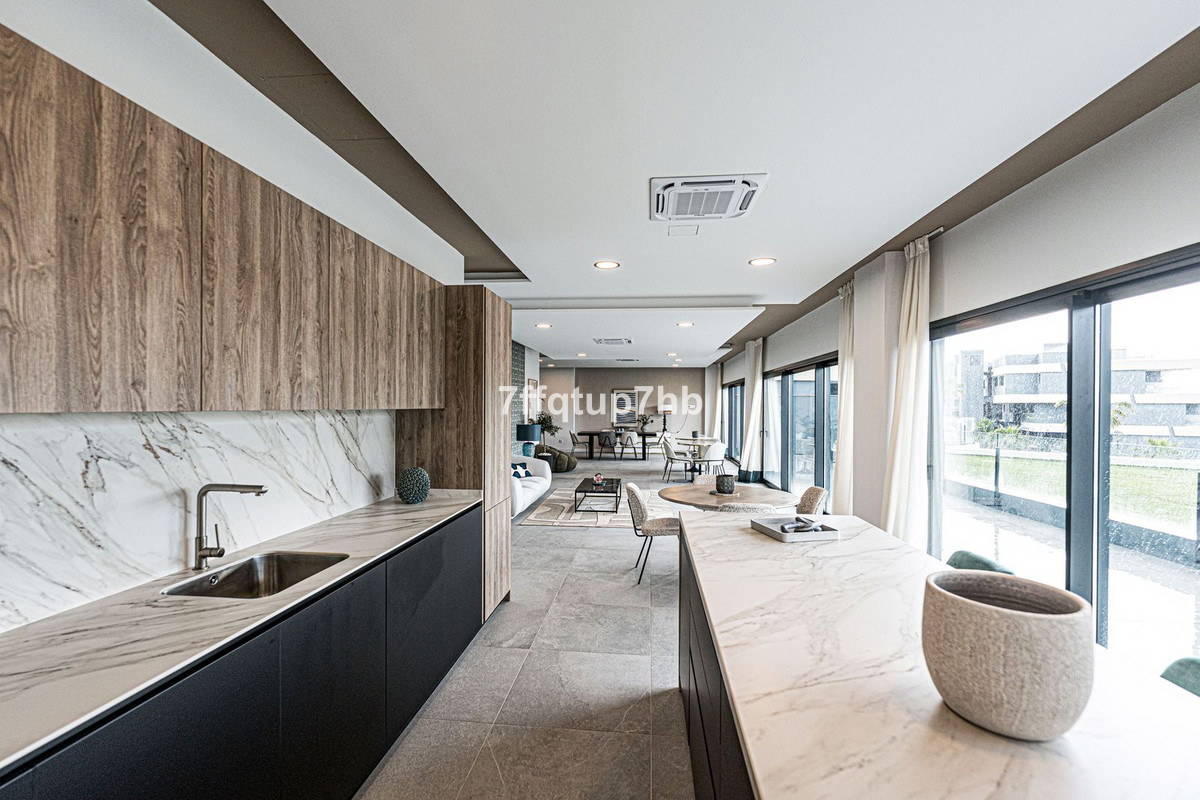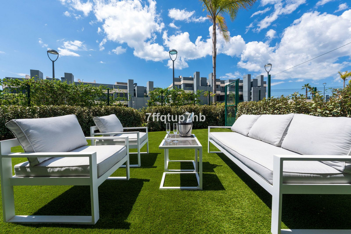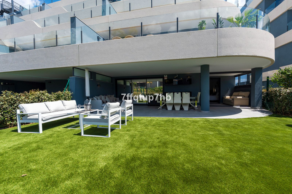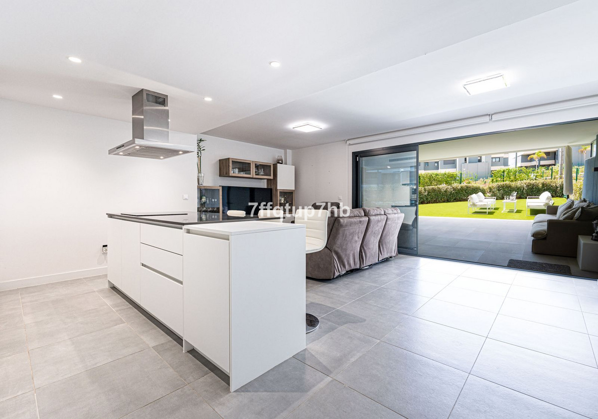 Este apartamento de 3 dormitorios cuenta con un diseño de planta abierta, integrando a la perfección una moderna cocina totalmente equipada con la sala de estar. El espacio se abre a una espectacular terraza orientada al sur y a un jardín privado de 80 m², perfecto para tomar el sol sin fin que caracteriza a la Costa del Sol.