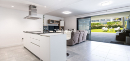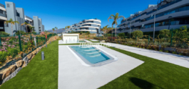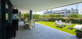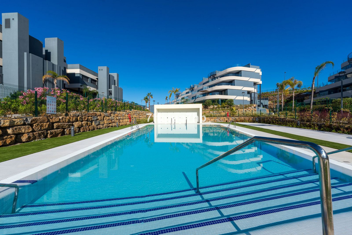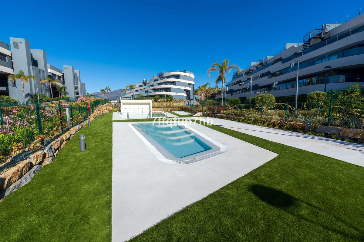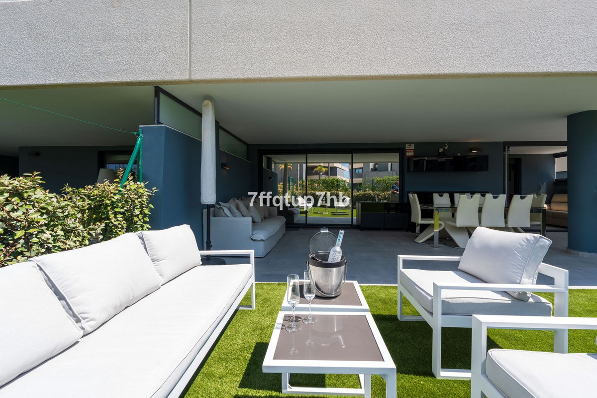 Este apartamento de 3 dormitorios cuenta con un diseño de planta abierta, integrando a la perfección una moderna cocina totalmente equipada con la sala de estar. El espacio se abre a una espectacular terraza orientada al sur y a un jardín privado de 80 m², perfecto para tomar el sol sin fin que caracteriza a la Costa del Sol.