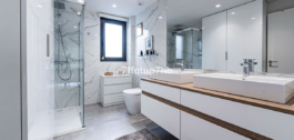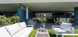 Dos de los tres dormitorios cuentan con elegantes cuartos de baño en suite. La suite principal ofrece acceso directo a una terraza privada, totalmente cerrada con cortinas de cristal, proporcionando el lugar perfecto para relajarse en total privacidad y disfrutar del amanecer sin salir de su habitación.