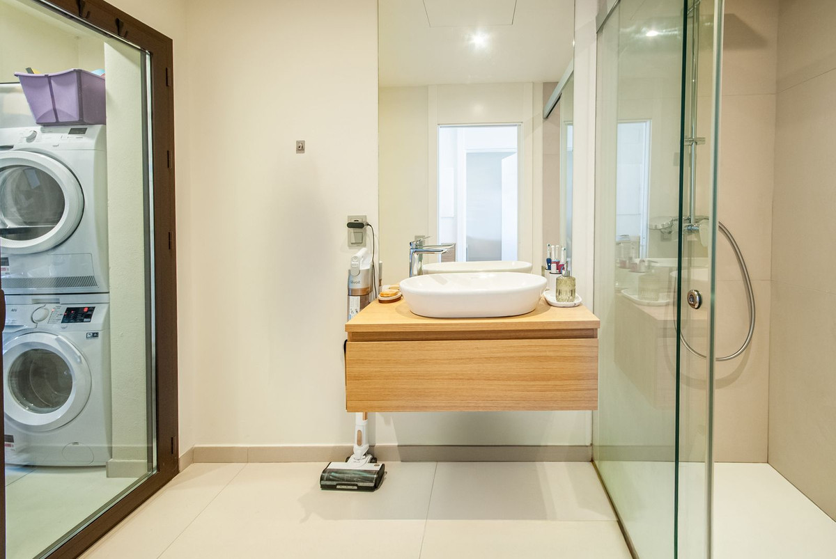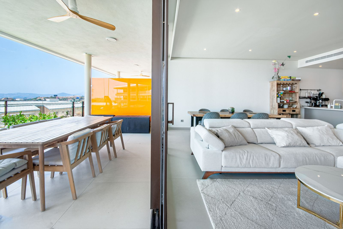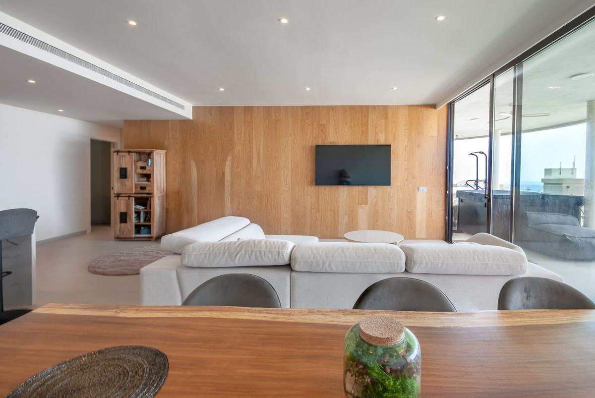 El apartamento ofrece 3 dormitorios, 2 baños y un luminoso espacio de estar de planta abierta que se conecta perfectamente a una gran terraza y jardín privado. Uno de los aspectos más destacados es su propio jacuzzi privado al aire libre, perfecto para relajarse mientras disfruta de las impresionantes vistas panorámicas sobre el valle y el mar.