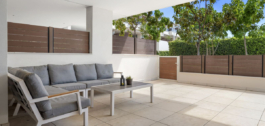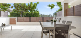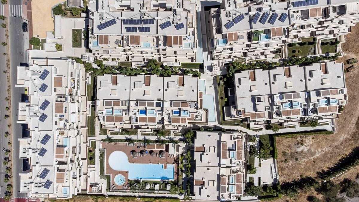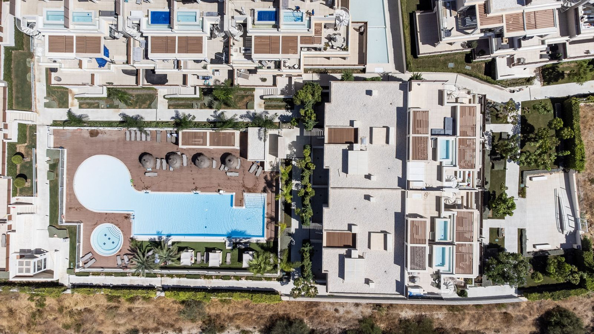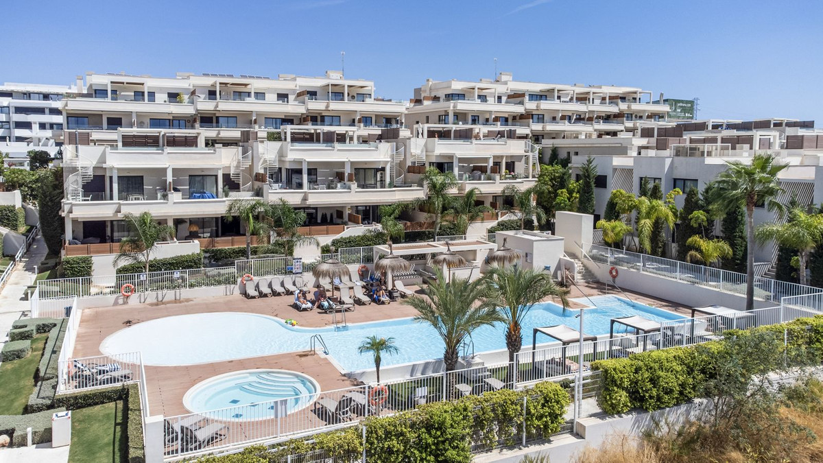 La comunidad cuenta con hermosos jardines y una preciosa piscina con tumbonas de lujo.