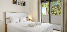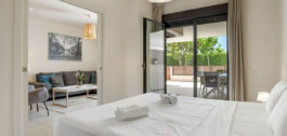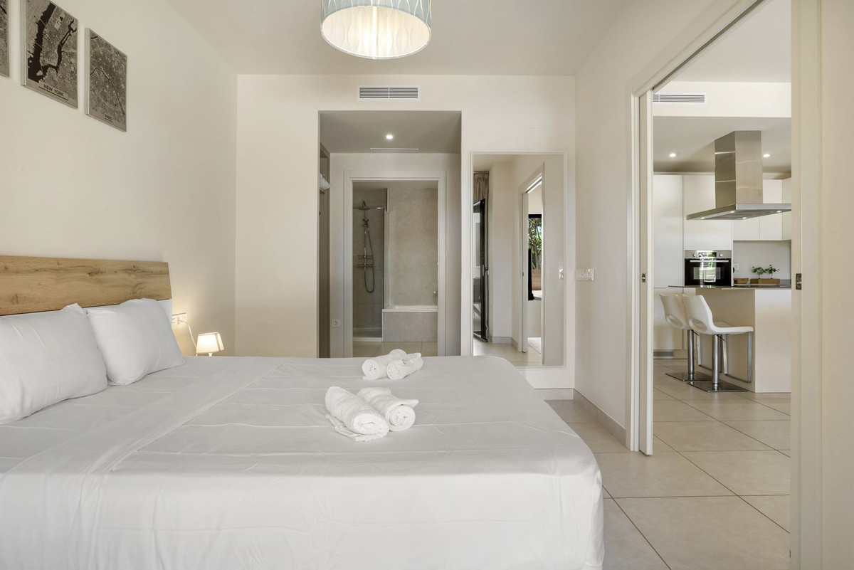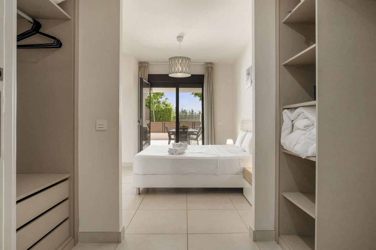 Desde el salón se accede al dormitorio principal. Un amplio dormitorio con armarios empotrados y un baño privado de lujo. Desde este dormitorio, también hay acceso a la terraza.