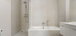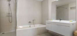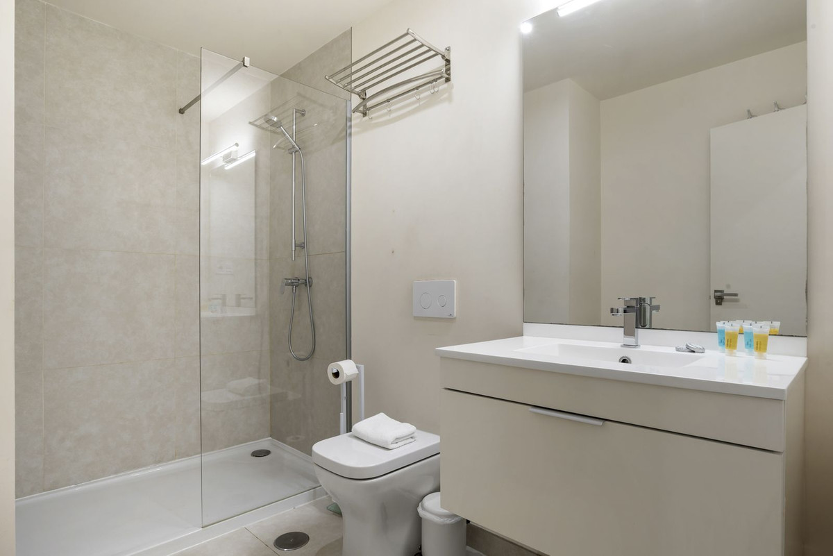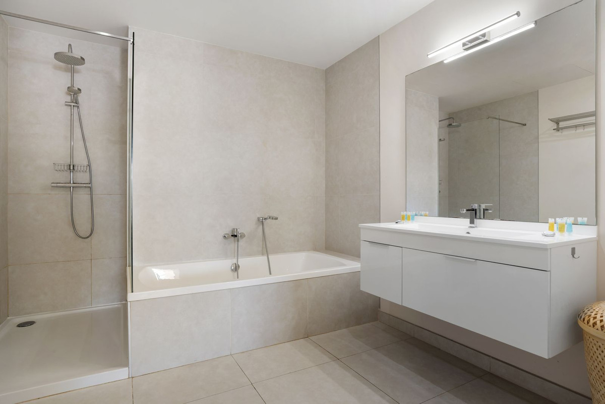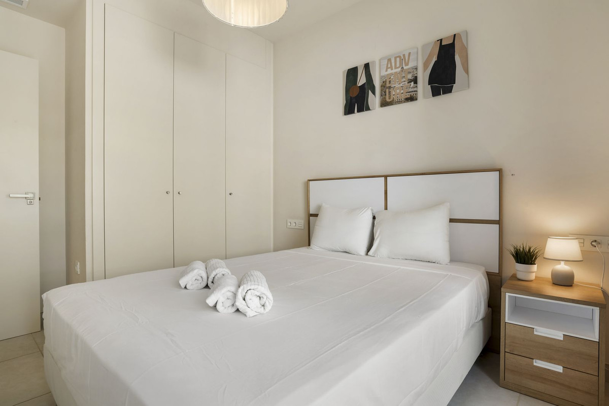 Al entrar, hay dos dormitorios con armarios empotrados y un baño situado en la parte trasera del apartamento. Ambos dormitorios tienen acceso a una pequeña terraza.