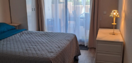 El apartamento consta de dos dormitorios bien proporcionados y dos cuartos de baño modernos, incluyendo un elegante cuarto de baño, así como un aseo para mayor comodidad. La cocina abierta, totalmente equipada con electrodomésticos de alta calidad, se complementa con un lavadero independiente. El comedor fluye a la perfección en el espacio de vida, que cuenta con una acogedora chimenea y acceso directo a la terraza cubierta, ideal para cenar al aire libre o relajarse en el clima mediterráneo. La propiedad se ofrece completamente amueblada, con paquetes de muebles opcionales disponibles, y está en excelentes condiciones, recientemente renovado.