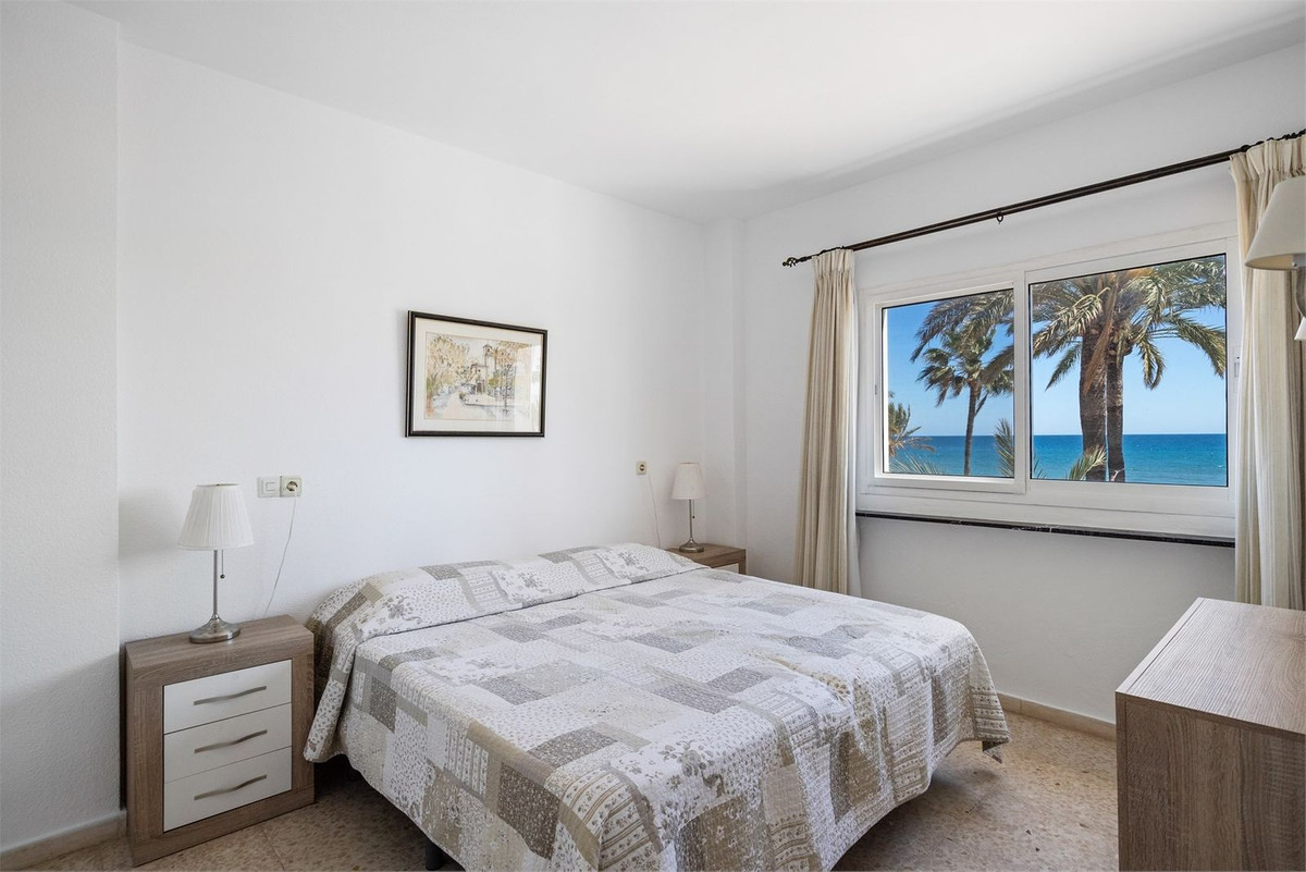 ¡Despiértese con el sonido de las olas y disfrute de la vida en primera línea de playa en Los Boliches! Este luminoso y espacioso apartamento de tres dormitorios cuenta con una impresionante terraza que envuelve la propiedad, ofreciendo inmejorables vistas tanto del mar Mediterráneo como de las montañas de Mijas.
