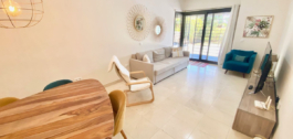 ¡Planta baja elevada con fabuloso espacio de terraza y jardín! La espaciosa parcela trasera está orientada al sureste, y la terraza y jardín delanteros están orientados al suroeste (con vistas al jardín, a la montaña y un poco al mar), por lo que siempre dispondrá de zonas con sol y sombra, perfectas para utilizar todo el año. El acceso es fácil, apto para personas mayores, familias con niños o mascotas. El interior está en buen estado y tiene una buena distribución, con las zonas de estar separadas de las de dormir. Dormitorios y baños de buen tamaño. Gran armario vestidor, podría convertirse en un tercer dormitorio. La urbanización es de última generación, con varias piscinas, hermoso jardín con patio verde, y seguridad las 24 horas. ¡Una visita obligada!