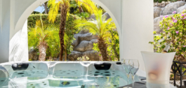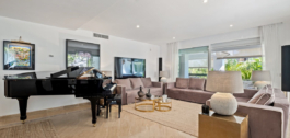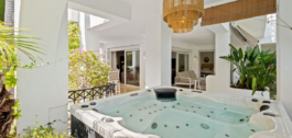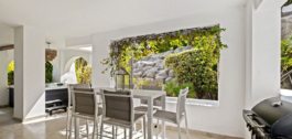 La propiedad cuenta con una espaciosa distribución de 245 m² con dos dormitorios en suite, un luminoso salón-comedor de planta abierta y una moderna cocina totalmente equipada. Grandes puertas correderas conectan el interior con una generosa terraza privada con jacuzzi y acceso directo a exuberantes jardines tropicales, creando el escenario perfecto para el entretenimiento o para disfrutar del sol durante todo el año.