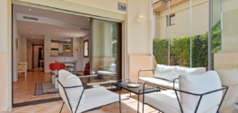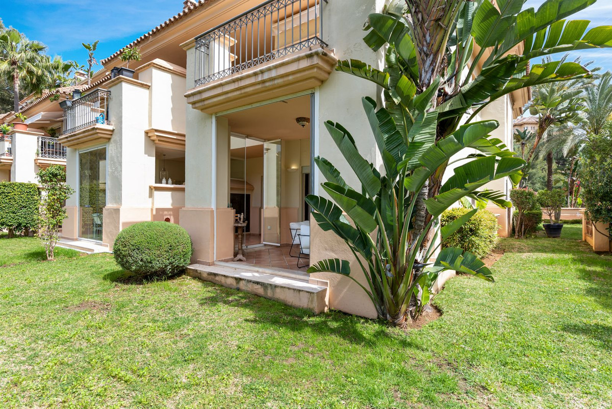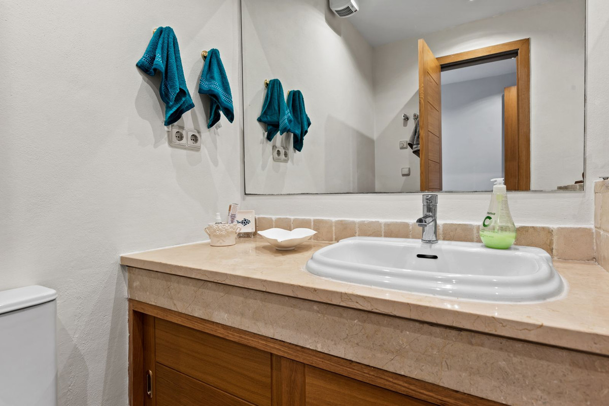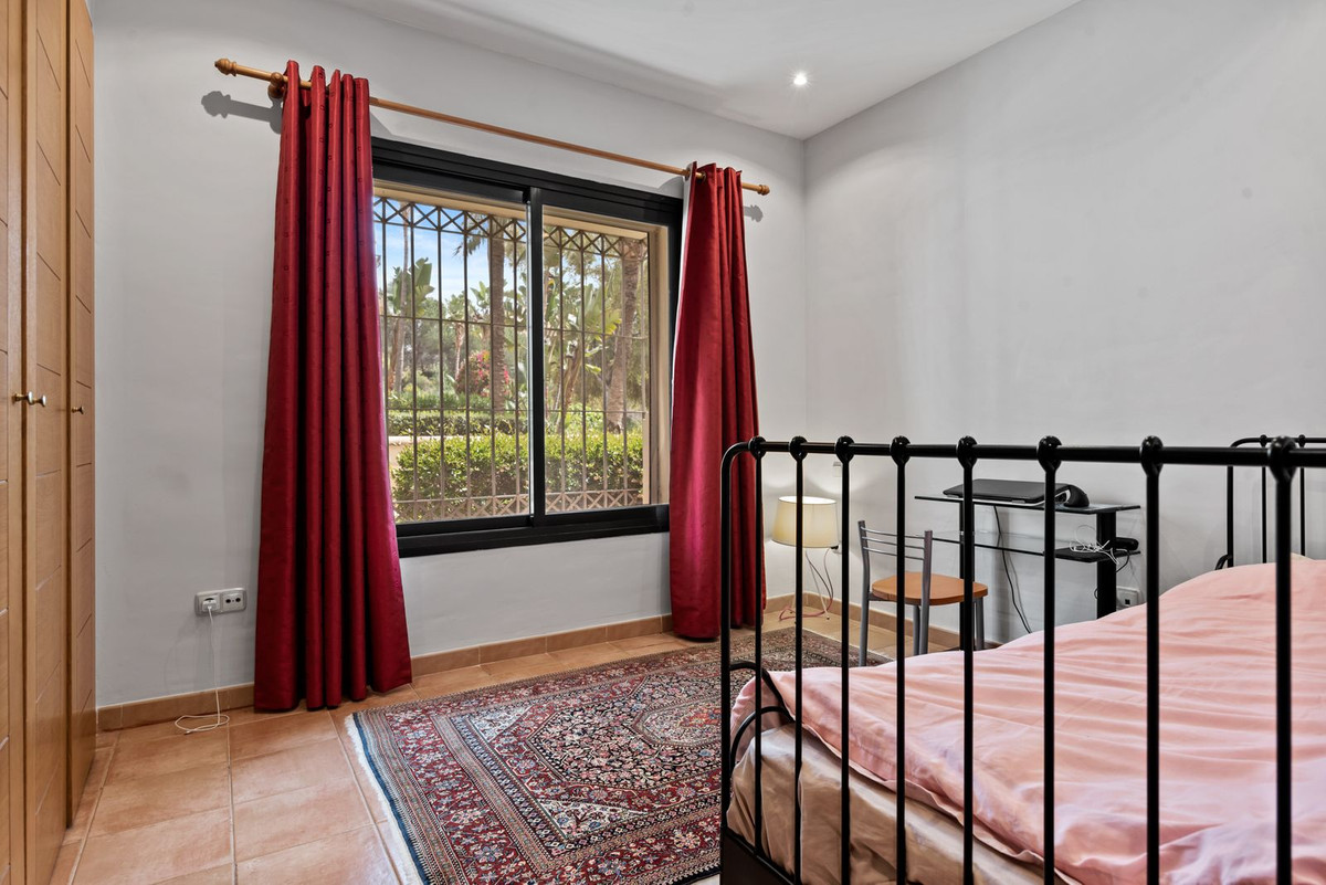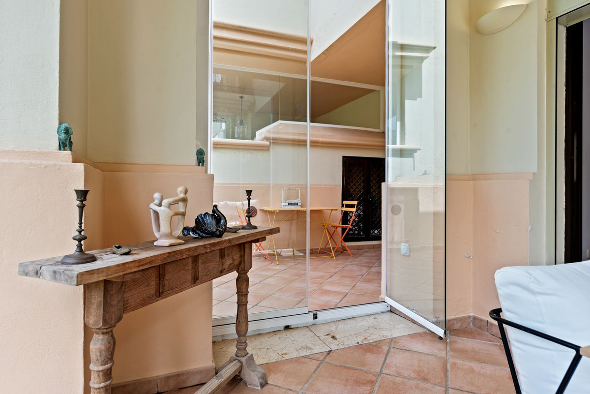 Este apartamento de dos dormitorios en esquina con jardín tiene una gran terraza privada con cortinas de cristal, mientras que un jardín privado le ofrece un oasis de tranquilidad para relajarse. Urb. Pueblo del Río está enclavado en las orillas del Río Real y rodeado por los majestuosos picos de Sierra Blanca, es reconocida como una de las urbanizaciones más pintorescas de Marbella. A sólo unos segundos de una de las mejores playas de la costa y a pocos minutos del centro principal de Marbella y del centro comercial La Cañada.