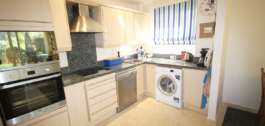 Este lujoso apartamento de 2 dormitorios orientado al suroeste en planta baja con piscina, jardín y vistas al golf está situado en un complejo muy bien cuidado cerca de la casa club de golf Miraflores en Riviera del Sol.