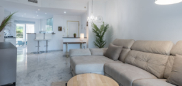 La comunidad cuenta con jardines comunitarios bien cuidados, cinco piscinas, pistas de pádel, una casa club, un gimnasio y una sauna. El apartamento ha sido recientemente renovado y ofrece un salón de planta abierta con una moderna cocina equipada con electrodomésticos Bosch. Incluye un dormitorio principal en suite, un dormitorio de invitados y un baño adicional. También hay una habitación extra versátil actualmente utilizada como comedor, que podría servir como dormitorio de invitados o despacho.
