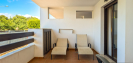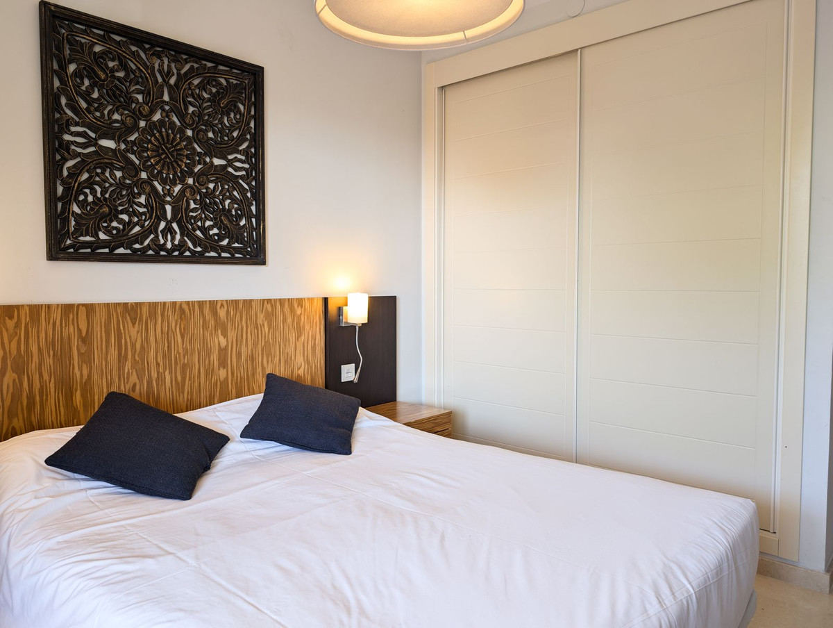 El apartamento está inundado de luz natural, lo que realza la sensación de amplitud. El dormitorio principal cuenta con baño privado, mientras que el espacioso segundo dormitorio ofrece comodidad adicional. Disfrute de deliciosas comidas en el restaurante del complejo, que ofrece una apetitosa cocina mediterránea que complementa a la perfección el estilo de vida relajado y exclusivo.