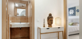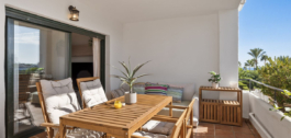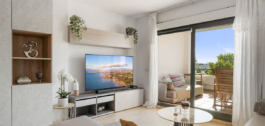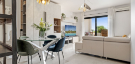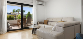 El apartamento en sí cuenta con un amplio salón que se abre directamente a una terraza orientada al oeste con vistas abiertas, ideal para disfrutar de puestas de sol y cenas al aire libre. El dormitorio principal incluye un cuarto de baño en suite, mientras que el segundo dormitorio y el cuarto de baño ofrecen un espacio cómodo para la familia o los invitados. La casa también cuenta con una cocina totalmente equipada con un lavadero para mayor practicidad.