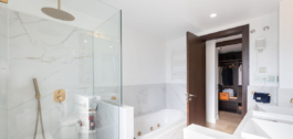 La cocina, separada del salón, está totalmente equipada con electrodomésticos de alta gama y ofrece amplias encimeras y mucho espacio de almacenamiento. Además, este apartamento cuenta con un impresionante dormitorio principal, con un lujoso cuarto de baño y un vestidor privado.